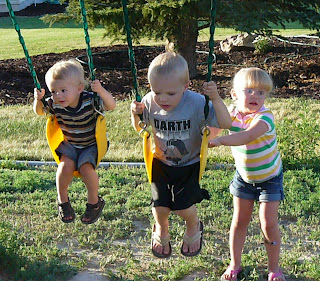 We had some friends move away about a year ago and they were in town this week to visit. We went over to hang out at a park with them. Hannah and Annabelle were great little friends before they moved away. It was fun for them to see each other again. Our neighbor has a little train that they pull behind their four wheeler. They came over and gave the kids a ride. We had fun visiting with them and catching up...I'm so happy that we were able to see them again!